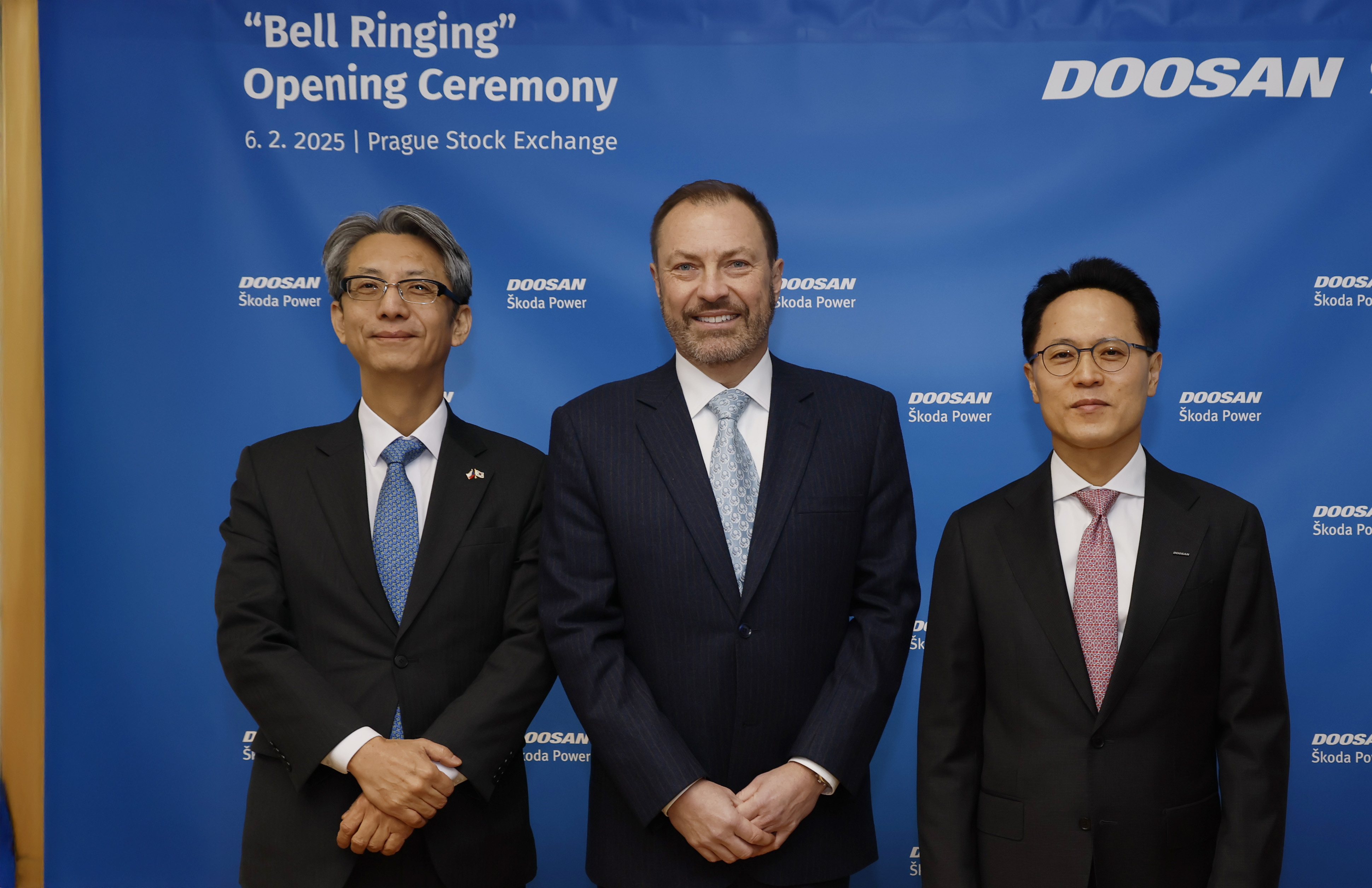 “It was a great fortune for us to be able to meet Doosan Skoda and work together,” remarked Doosan Enerbility CFO Sanghyun Park in his congratulatory remarks given at the bell ringing ceremony. “It has been 16 years since Doosan Skoda Power joined Doosan Enerbility. Last year, Team Korea had been selected as the preferred bidder for the Dukovany Nuclear Power Plant project. This remarkable achievement was possible because Doosan Skoda Power stays with us by our side. I would like to take this opportunity to express my gratitude and respect to the Czech Republic and Doosan Skoda Power.”