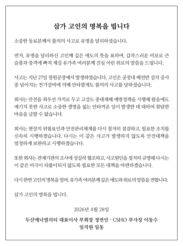 두산에너빌리티, 미국 빅테크와 가스터빈 3기 공급계약 체결