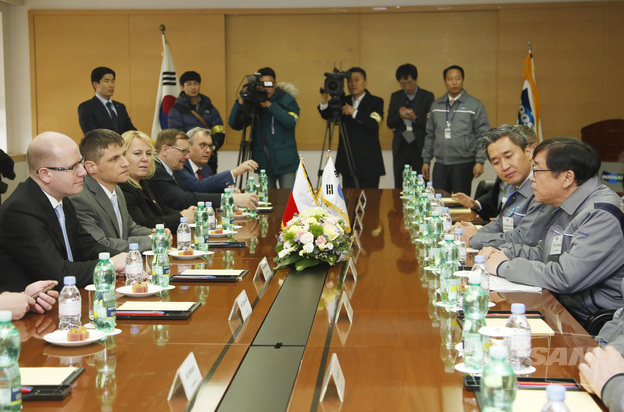 - □ 한국과 체코 수교 25주년을 맞아 양국간의 협력과 우호 증진을 위해 정부와 기업인 등 60여 명의 경제사절단과 함께 방한 중인 보후슬라프 소보트카(Bohuslav Sobotka) 체코 총리가 2월 27일, 두산중공업을 방문해 경영진과 간담회를 가진 후 생산현장을 둘러봤다.